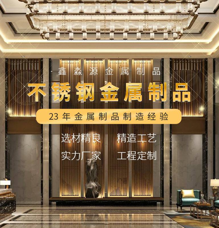 主要经营不锈钢屏风隔断,不锈钢家具,酒店不锈钢大门,不锈钢大拉手,不锈钢地脚线,不锈钢装饰条,不锈钢蚀刻花纹装饰板等不锈钢制品。